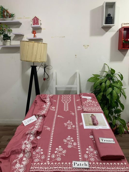 Fully EMB 3PC Unstitched Winter Dress With EMB Shawl- DE-147