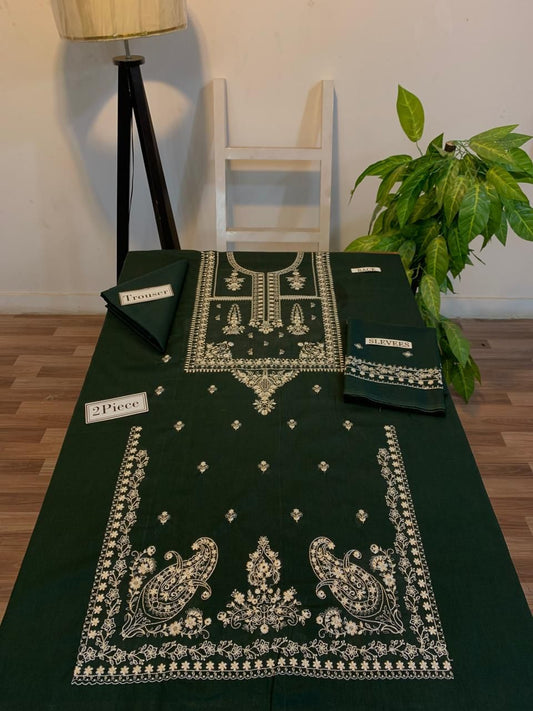 Embroidered 2Pc Dhanak Unstitched Winter Dress With EMB Patches - W610