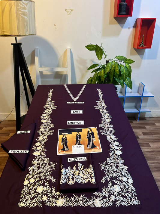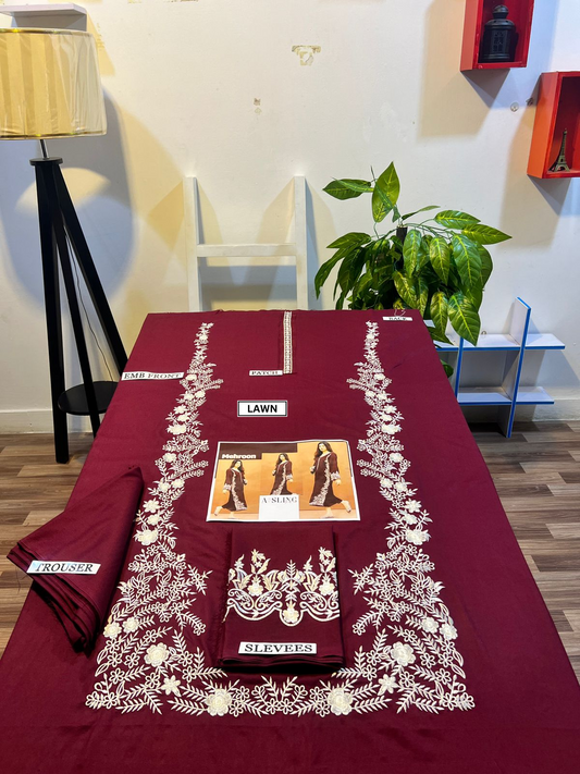 Fully EMB 3PC Dhanak Unstitched Winter Dress With EMB Shawl - W103