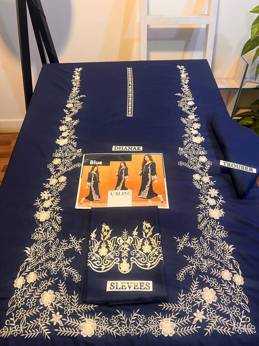 Embroidered 2Pc Dhanak Unstitched Winter Dress With EMB Patches - Blue W620