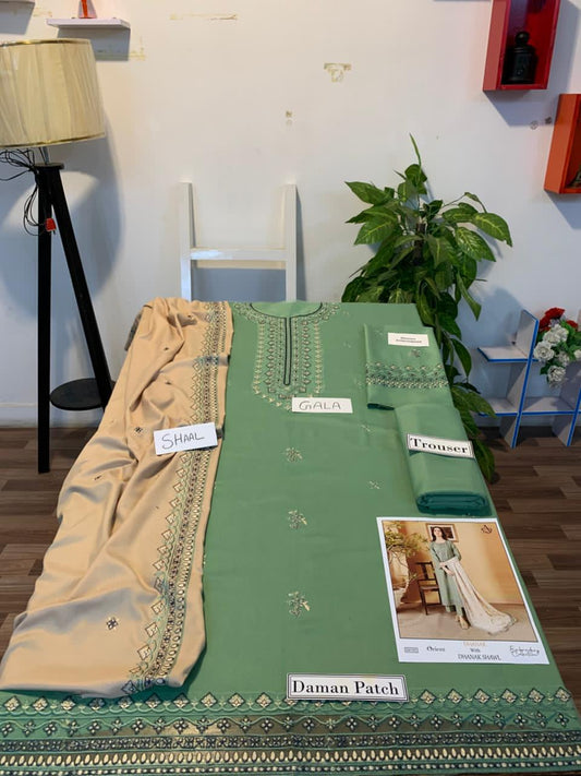 Fully EMB 3PC Dhanak Unstitched Winter Dress With EMB Shawl - W104