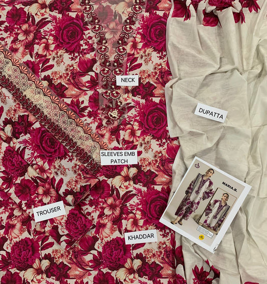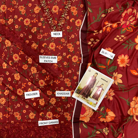 EMB 3PC Unstitched Winter Dress With Pashmina Printed Shawl- DE-146