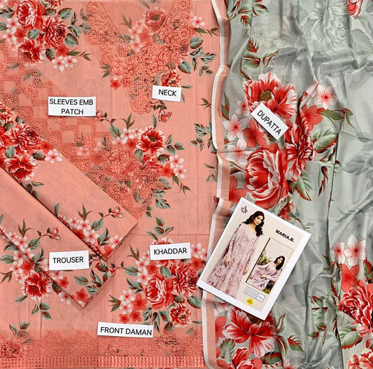 Fully EMB 3PC Unstitched Winter Dress With EMB Shawl- DE-145