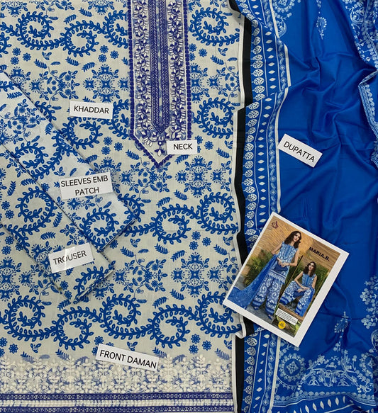 EMB 3PC Dhanak Unstitched Winter Dress With EMB Shawl - W111