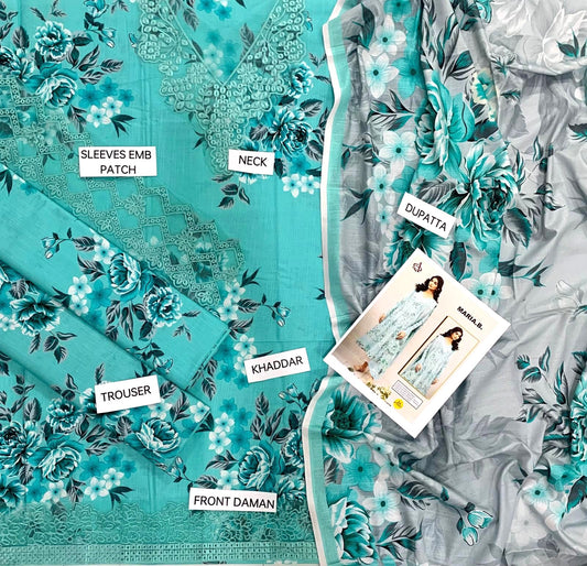 EMB 3PC Dhanak Unstitched Winter Dress With EMB Shawl - W113