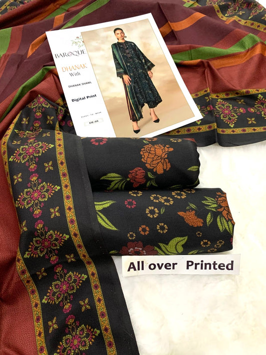 Khaddar Printed 3PC Unstitched With Khaddar Shawl- P107