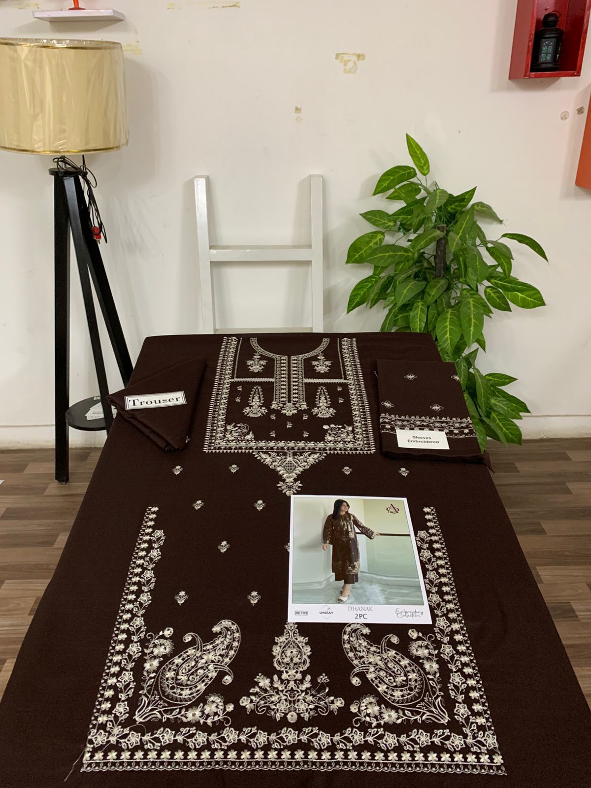 Embroidered 2Pc Dhanak Unstitched Winter Dress With EMB Patches - W623