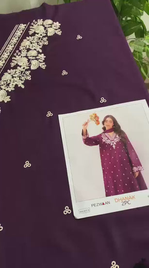 Embroidered 2Pc Dhanak Unstitched Winter Dress With EMB Patches - W630