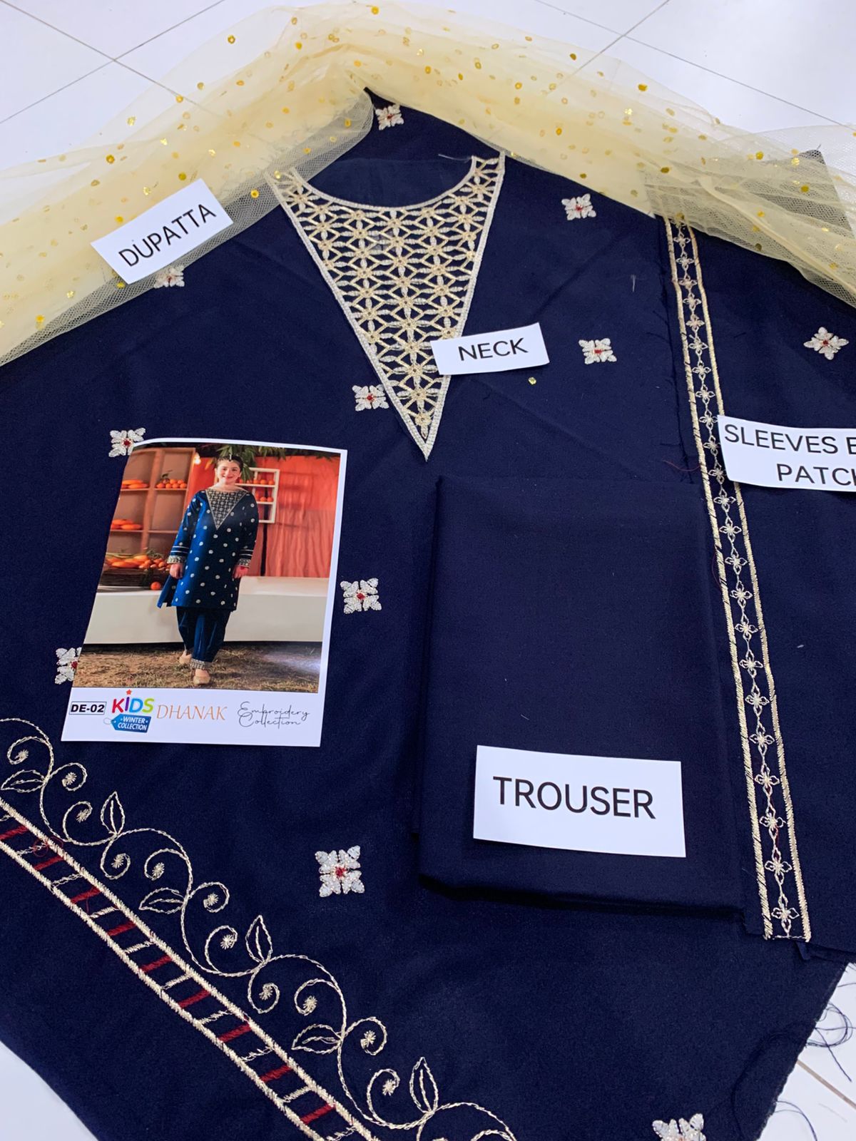 Kids 3PC Embroidered Winter Dress With Net Dupatta - Unstitched - DE02